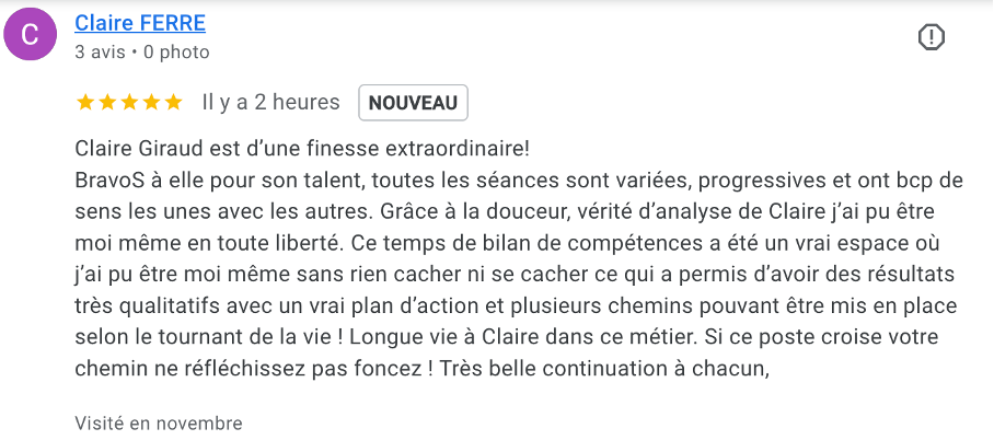 Bonjour, je m’appelle Claire Giraud et je suis coach certifiée en bilan de compétences
