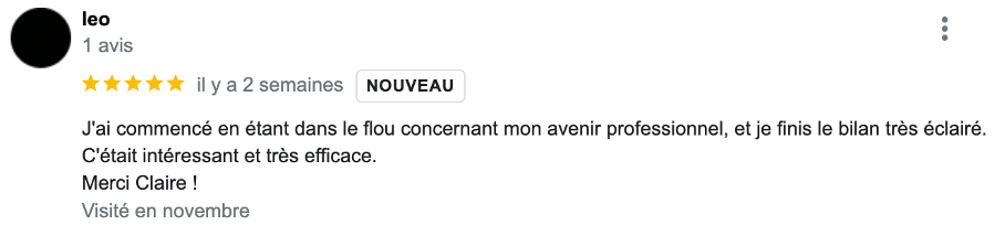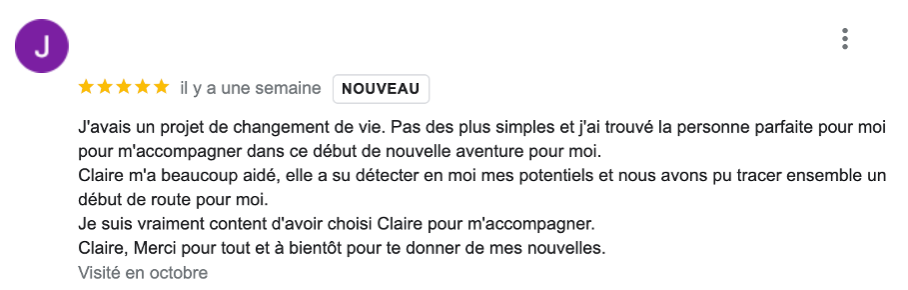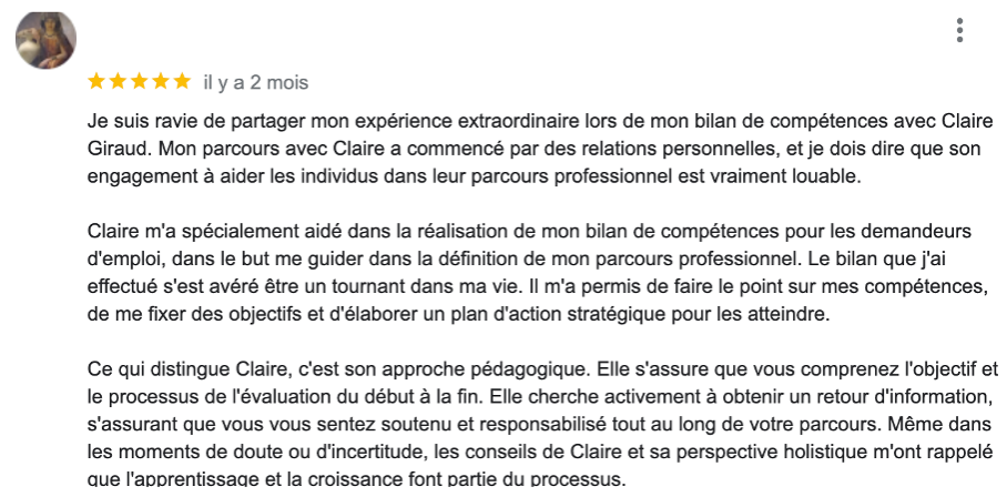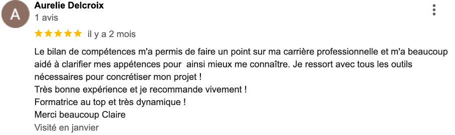 Je suis diplômée d’une école de commerce à Lille (EDHEC), me suis formée à la PNL (master PNL) et à la pratique du bilan de compétences (Coach en bilan de compétences certifiée CP FFP – RS5904 ) et des tests psychométriques (Habilitation Central Test).
